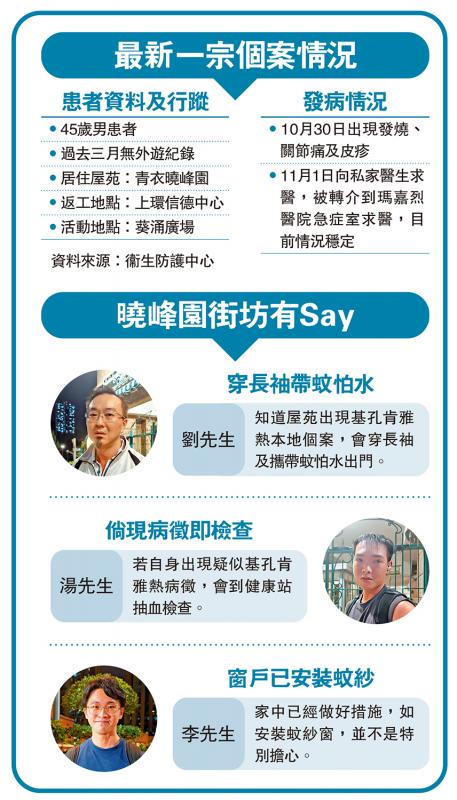 劉先生:知道屋苑出現基孔肯雅熱本地個案,會穿長袖及攜帶蚊怕水出門。