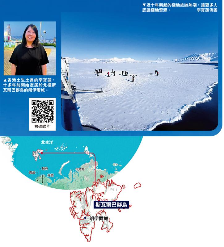 左圖:香港土生土長的李寶蓮,十多年前開始定居於北極斯瓦爾巴群島的朗伊爾城。右圖:近十年興起的極地旅遊熱潮,讓更多人認識極地資源。/李寶蓮供圖