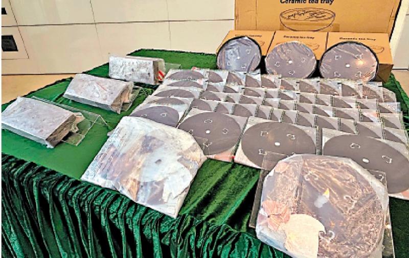 第一宗案件發生在10月3日,海關人員檢查一批報稱空運至日本的茶盤,使用X光機掃描後,發現器具呈現的顏色影像,與申報的陶瓷物料不同,茶盤有加工痕跡,刮走茶盤表面塗層後,發現銀色金屬,為金銀合金圓片,重量約60公斤,價值約2000萬元。
