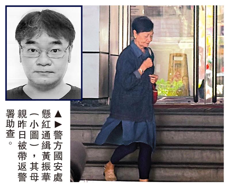 圖:警方國安處懸紅通緝黃振華(小圖),其母親昨日被帶返警署助查。