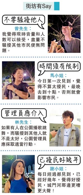 林先生:如果有人在公園播歌跳舞,而騷擾到其他人就不是太好,公園管理員應採取適當行動。