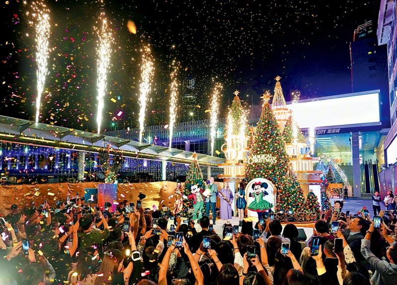 聖誕節臨近,全港各大商場開始推出各式慶祝活動。海港城昨日(10日)聯同香港迪士尼樂園度假區,於海運大廈露天廣場舉行「Magical Christmas@海港城」聖誕活動亮燈儀式(圖)。活動將於明日(11月12日)起至2026年1月4日開放,設有五大打卡熱點,與大家一起歡度聖誕時光。\大公報記者 陳劍(文) 麥潤田(圖)