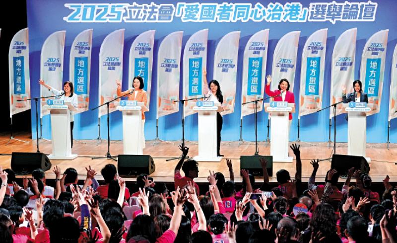 圖:首場2025立法會選舉論壇昨日在荃灣大會堂舉行,新界西南地方選區五名候選人就地區議題發表意見。\大公報記者麥潤田攝