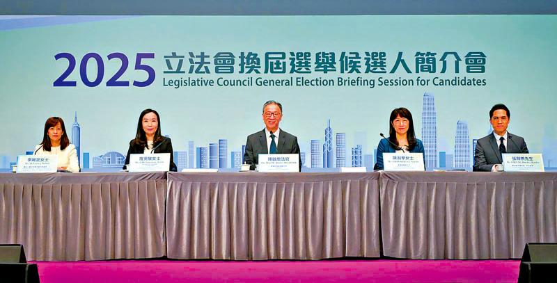 選舉管理委員會昨日向2025年立法會換屆選舉候選人簡介選舉指引及法例,選管會主席陸啟康法官於簡介會上重點講解是次選舉與候選人相關的安排及須注意事項,強調將確保選舉在公開、誠實及公平的原則下進行。