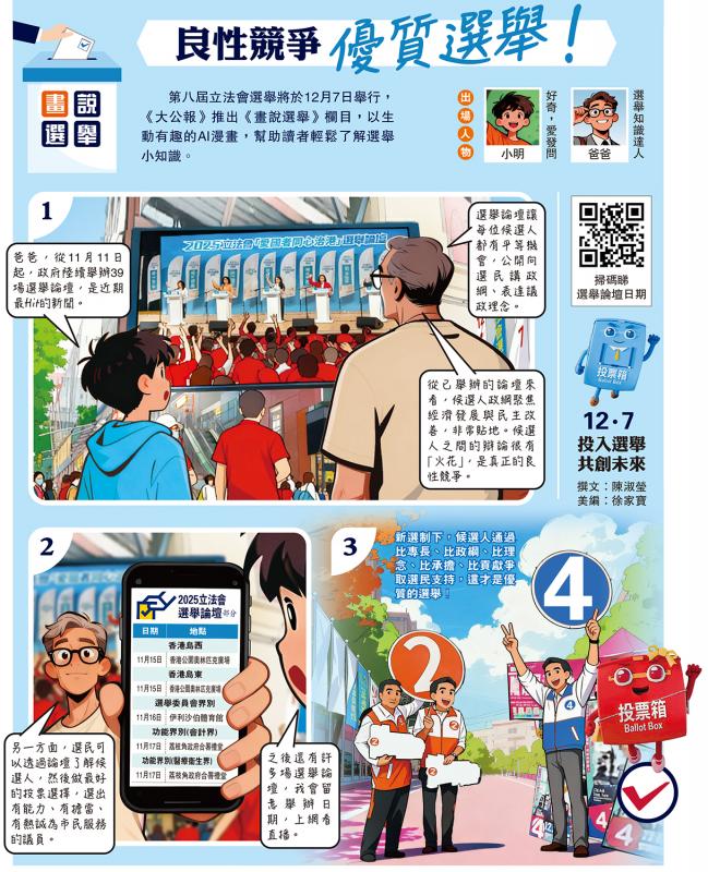 第八屆立法會選舉將於12月7日舉行,《大公報》推出《畫說選舉》欄目,以生動有趣的AI漫畫,幫助讀者輕鬆了解選舉小知識。
