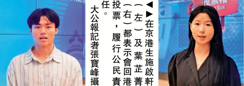圖:在京港生施啟軒(左)及葉芷菁(右)都表示會回港投票,履行公民責任。\大公報記者張寶峰攝