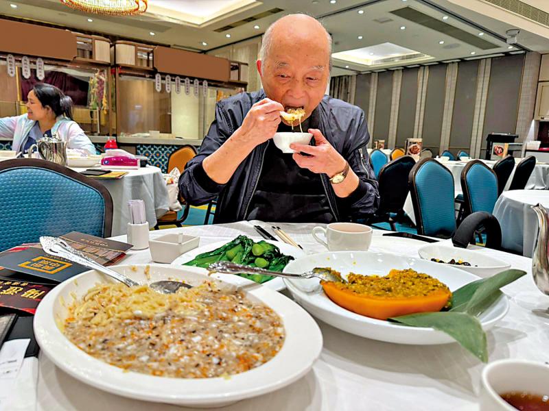 圖:85歲的韋伯早前到一間提供照護食餐膳的餐廳品嘗軟餐。