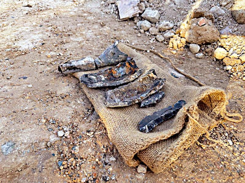 圖:機場T2客運廊地盤發現一枚約30厘米乘7厘米的戰時英軍迫擊炮彈,警方爆炸品處理課人員即場引爆該炸彈。