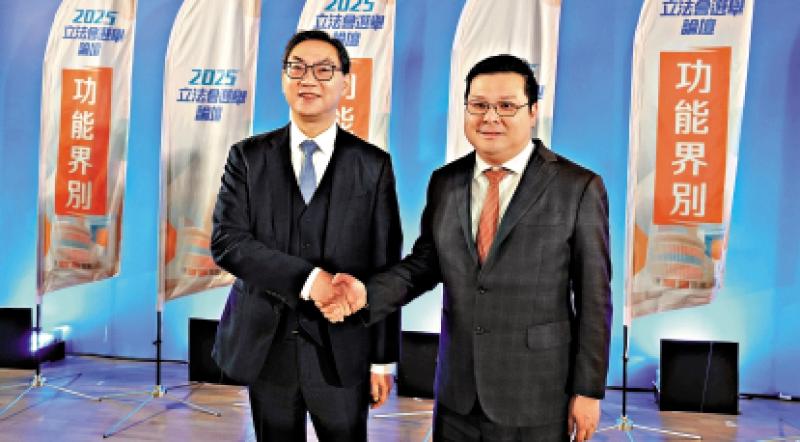 新一屆立法會選舉投票將於12月7日舉行。2025立法會「愛國者同心治港」功能界別地產及建造界選舉論壇昨日(20日)上午舉行,L1號候選人黃浩明和L2號候選人趙式浩圍繞個人政綱,以及「加強基層醫療服務」、「警惕軟對抗,進一步提防國安風險」、「鼓勵科普教育」等議題展開討論。現場座無虛席,氣氛熱烈。\大公報記者 陸九如