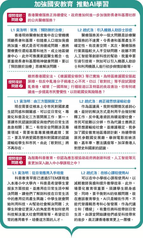 可以在中小學核心課程使用AI,以減輕教師負擔和提升教學效率。此外,場景化教育很重要,須讓學生親身感受。同時,要平衡對AI的依賴問題,故在應該教育學生,AI只是輔佐作用,不能代替邏輯思考和心智發展。作為代議士和「橋樑」,有責任將科技帶到日常生活,由課堂開始讓他們感受科技帶來的進步,真正讓香港教育更上一層樓。