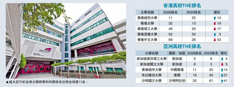圖:城大在THE全球大學跨學科科學排名位例全球第11名。