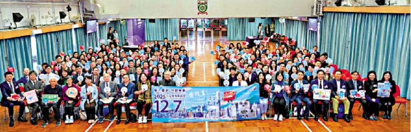 圖:「領航教師及校長培訓計劃」畢業典禮上,一眾嘉賓呼籲市民12月7日立法會選舉踴躍投票。