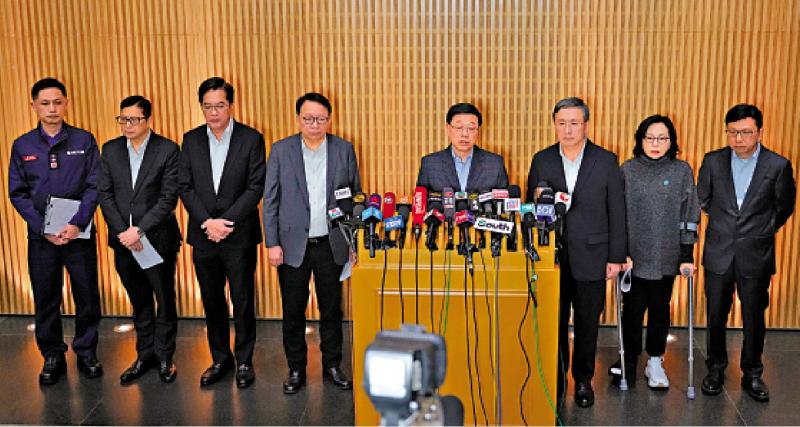 圖:行政長官李家超表示,特區政府將成立三個工作組,全方位推進大火救援及善後工作。\大公報記者黃洋港攝