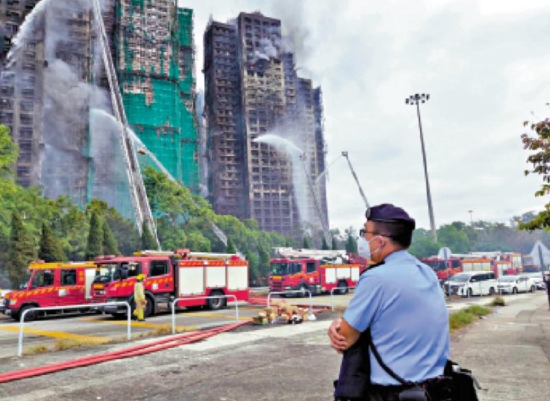 此時一隊穿上裝備的消防員正進入火場,李Sir說據了解是進入宏泰閣搜救,看着消防員一隊隊川流不息進入火場搜救,李Sir亦感嘆:「已經盡做了!」\大公報記者 李雅雯