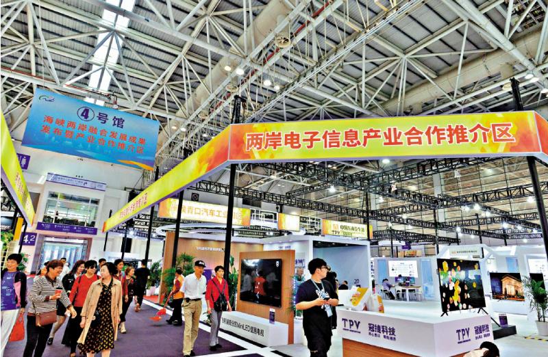 圖:「十五五」時期大陸經濟社會高質量發展將為廣大台胞台企發展提供更多機遇,有利進一步加強兩岸經合。圖為在福州舉行的海交會兩岸電子信息產業合作推介區。/資料圖片