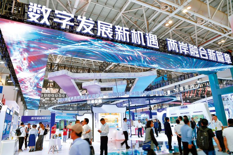 圖:「十五五」規劃建議擘畫了國家未來五年發展的宏偉藍圖,為廣大台胞台企提供豐富機遇。圖為在福州市舉辦的展會上設置的兩岸融合專區。\資料圖片