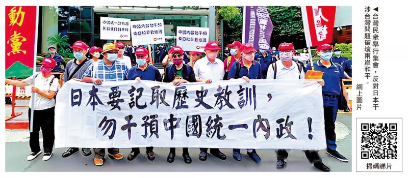 圖:台灣民眾舉行集會,反對日本干涉台灣問題破壞兩岸和平。\網上圖片