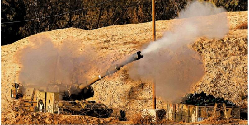 圖:以色列軍隊向加沙地帶發射炮彈。\路透社