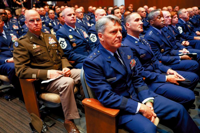 圖:9月30日,美軍將領在海格塞斯和特朗普演講時反應冷淡。\路透社