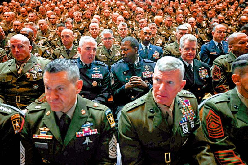 圖:全球數百名美軍將領9月30日在弗吉尼亞州匡蒂科基地出席會議。\法新社