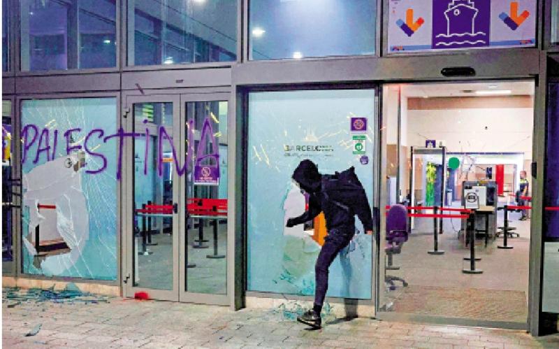 圖:西班牙2日爆發抗議以色列攔截援助船隊的示威,街邊建築遭打砸和塗鴉。\路透社