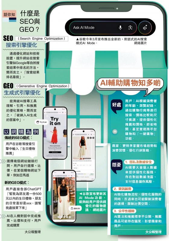 圖:谷歌今年3月宣布推出全新的、對話式的AI搜索模式AI Mode。\網絡圖片