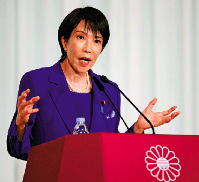 圖:高市早苗4日在東京出席自民黨總裁選舉後的新聞發布會。\美聯社
