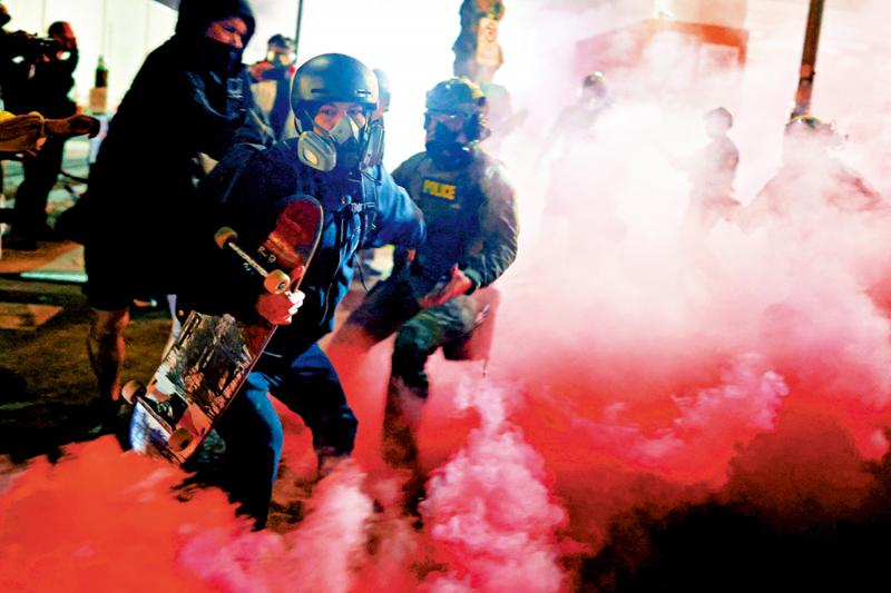 圖:反對特朗普移民政策的示威者5日在波特蘭與警方發生衝突。\路透社