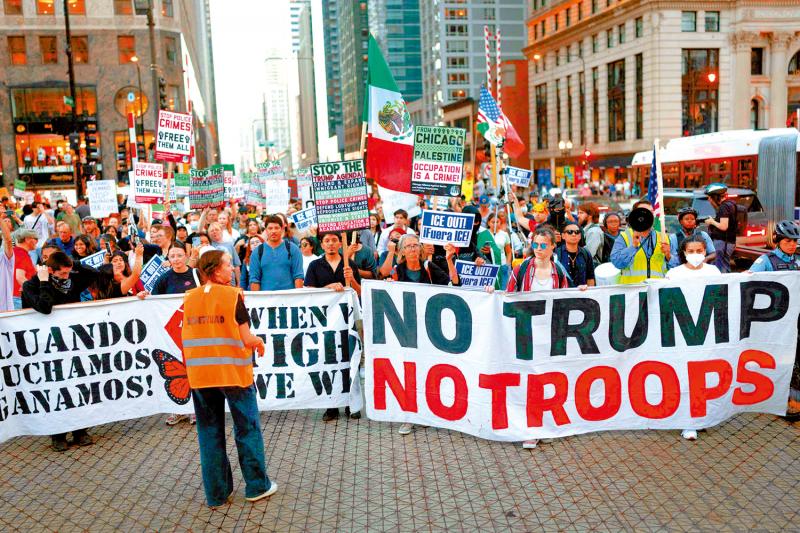 圖:美國民眾9月30日在芝加哥市示威,抗議特朗普政府的多項政策。\法新社