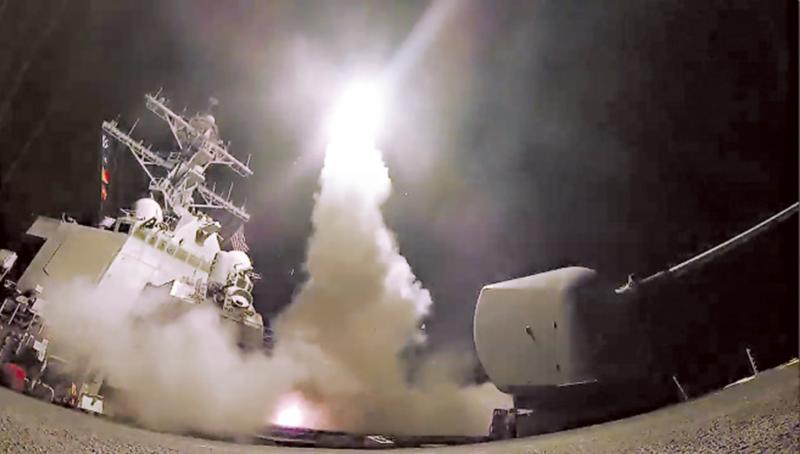 圖:美軍驅逐艦在地中海發射「戰斧」導彈。\美聯社