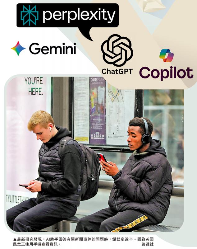 【大公報訊】EBU與BBC近期展開研究,涉及來自英國、法國、德國和美國等18個國家的22家公共媒體服務機構,以14種語言對OpenAI的ChatGPT、微軟的Copilot、谷歌的Gemini及Perplexity公司的同名AI助手進行研究。這4家公司總部均位於美國。