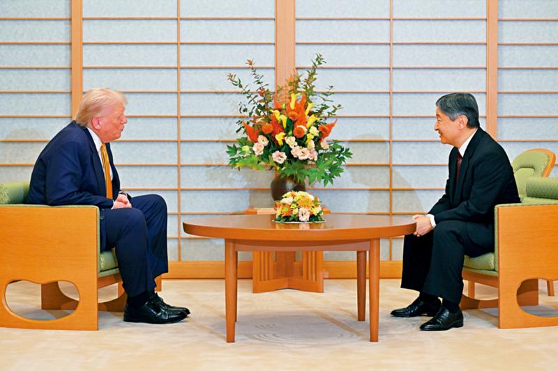 圖:特朗普(左)27日在東京與日本天皇德仁會面。\美聯社