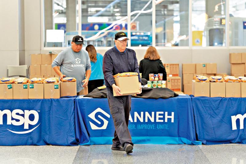 圖:美國運輸安全管理局僱員29日領取慈善機構提供的免費食品。\路透社