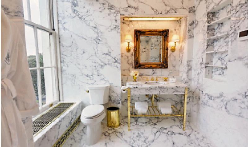 圖:翻新後的白宮林肯浴室換上金色水龍頭、鏡子和垃圾桶。\路透社