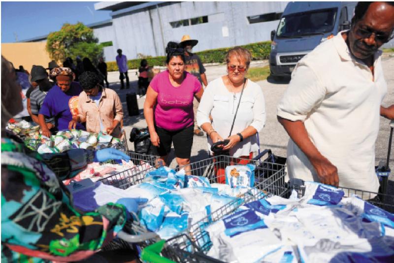 圖:美國民眾10月30日在邁阿密領取救濟糧。\法新社
