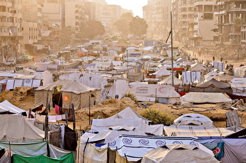 圖:以軍幾乎摧毀整個加沙城,當地民眾被迫暫時在帳篷避難。\路透社