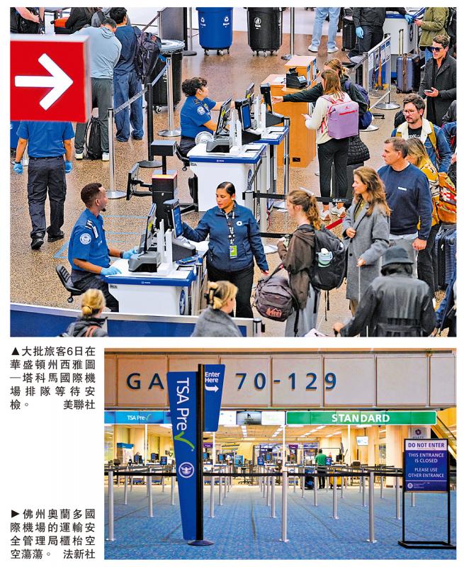【大公報訊】美國政府停擺讓全美航空系統承受巨大壓力,交通部從7日開始削減全美40座繁忙機場10%的運輸量,大批旅客被迫緊急改訂機票,十分混亂。美國航空公司6日表示,將縮減航班時刻表,相當於每天取消220個航班。達美航空稱,將取消原定7日起飛的約170個航班。