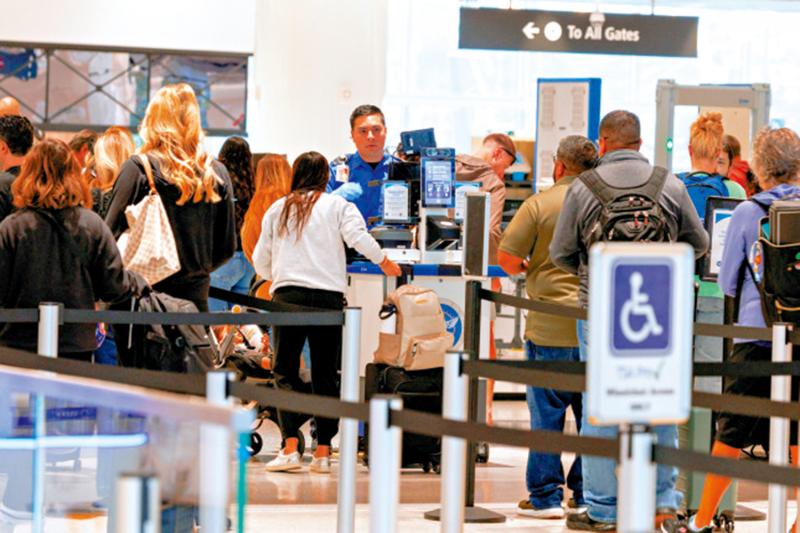圖:旅客7日在聖迭戈國際機場排隊。\路透社