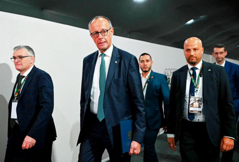 圖:德國總理默茨(中)面臨多重挑戰。\法新社