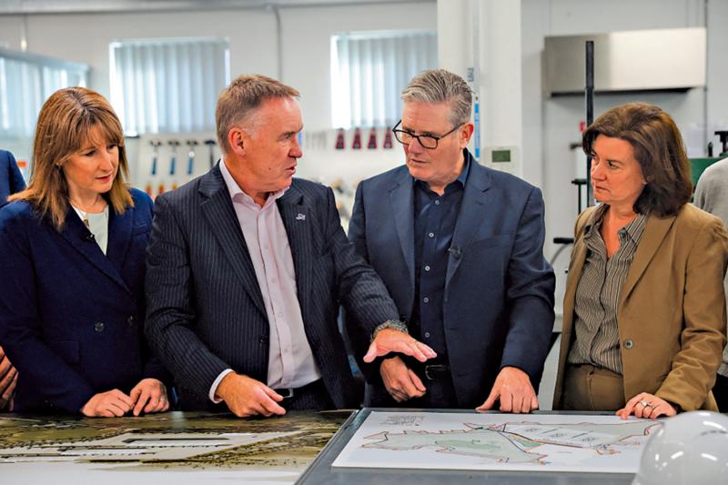 圖:英國首相斯塔默(右二)13日到訪安格爾西島的威爾法基地。\路透社