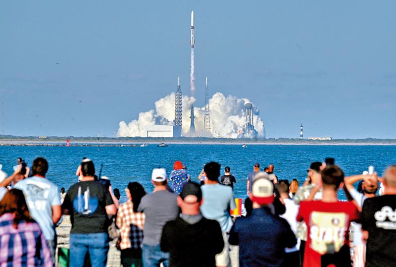 圖:「藍色起源」公司的「新格倫」重型運載火箭13日發射升空。\路透社