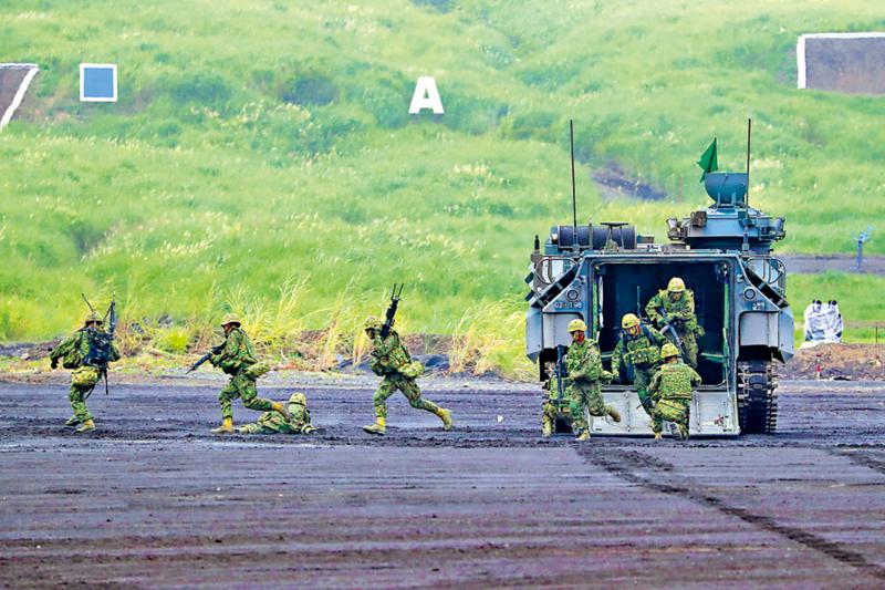 圖:日本自衛隊在靜岡縣進行演習。\新華社