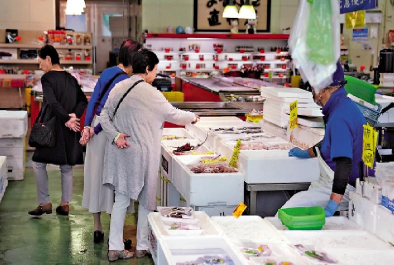圖:日本水產業對出口前景感到憂慮。圖為福島縣小名濱漁港附近海鮮市場。\美聯社