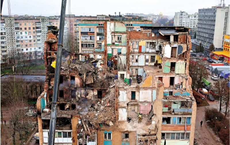 圖:烏克蘭捷爾諾波爾市一棟居民樓遭俄軍空襲。\美聯社