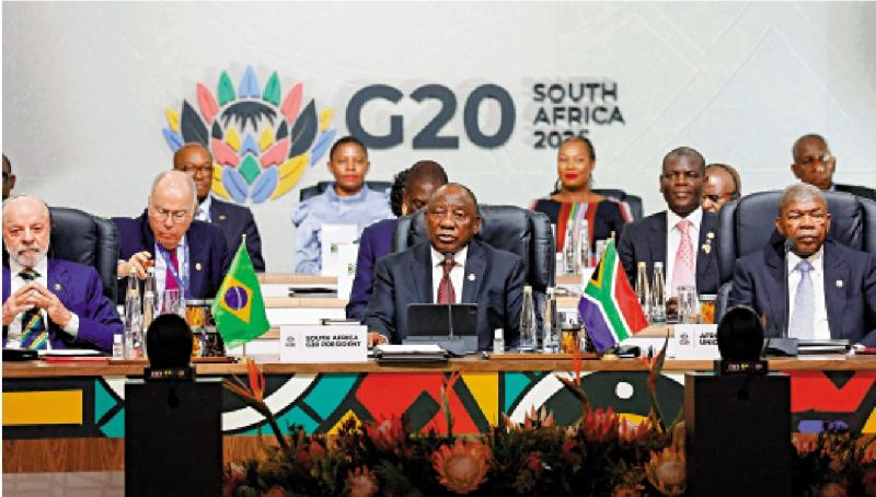圖:南非總統拉馬福薩(前排中)22日在G20峰會上發表演說。\法新社