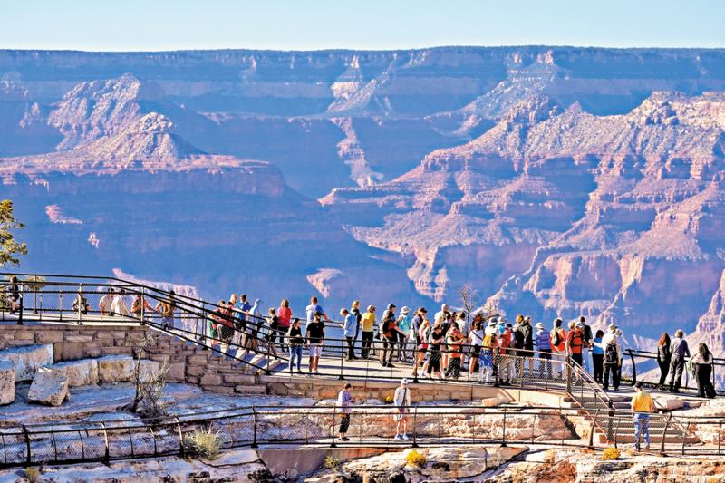 圖:大批遊客在美國亞利桑那州大峽谷國家公園內遊覽。\美聯社