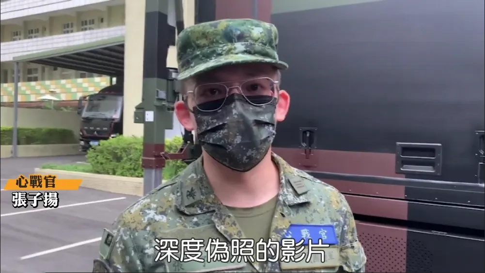 偽造影音自娛自樂的「馬戲團」。2021年9月,「心戰大隊」三中隊隊長王正平、一中隊張子揚等人運用AI換臉、配音等深偽技術,編造政治謠言在網上傳播,手段卑劣。可笑的是,張子揚還曾在台媒鏡頭前,演示其模仿目標對象念稿的「工作過程」,暴露其「產品」不是自動生成,「人工智能」原來是「人工、智障」。辦案人員對譚主說,台軍的這些技術雖具有一些迷惑性,但實際「水平三流」,其AI特徵很容易被識別,連大陸普通AI鑒偽平台都騙不過。「心戰大隊」「整活」不斷,近年來他們還熱衷宣傳以民用皮卡改裝喊話「心戰作業車」、放飛無人機投放傳單、製作「投誠方便麵」等,引發島內網友陣陣嘲諷,「現代戰爭還會讓你有機會開卡車慢慢喊話?」「不如空投到台灣偏遠地區比較實在些」「都什麼年代了,還用這招」。