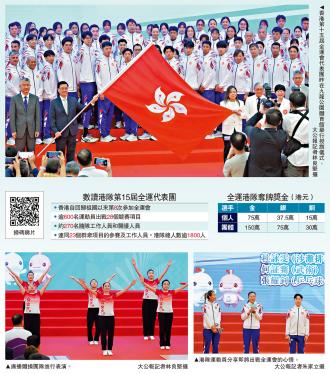 第十五屆全國運動會倒數24日/逾600健兒征戰 李家超向代表團授旗 港隊全運個人金牌獎金增至75萬