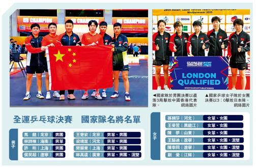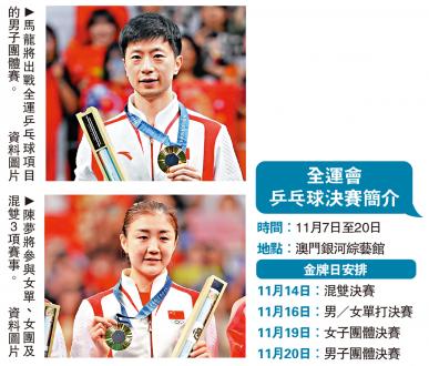 第十五屆全國運動會倒數24日/全運乒球參賽名單出爐 馬龍出戰男團賽