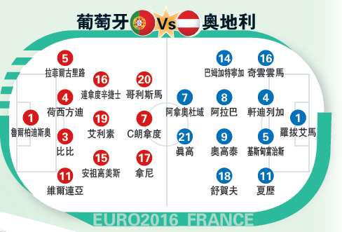 預料今仗C朗將繼續夥拍上場入波的拿尼負責攻堅,畢竟若C朗腳風回順,奧地利真是「多多也不夠輸」,而且此役將是C朗第128次為國家隊上陣,正式超越費高而成為葡軍史上代表次數最多的球員。年僅18歲的連拿度辛捷士上場以後備上陣,相信可繼續後備登場吸取經驗。
